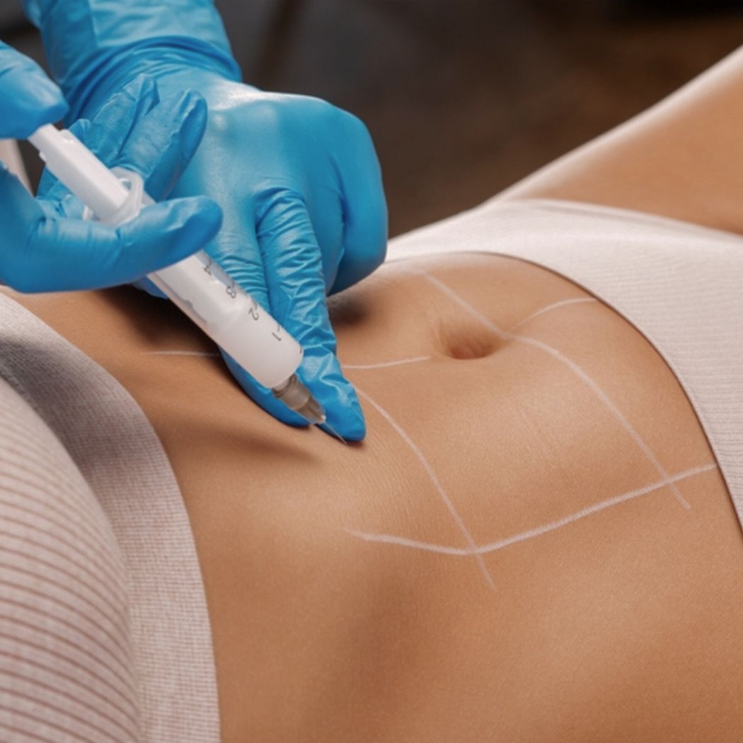 Lipolyse ist eine gezielte Behandlung zur Reduktion kleiner Fettdepots. Durch spezielle Wirkstoffe werden Fettzellen im behandelten Bereich aufgelöst und anschließend vom Körper abgebaut.